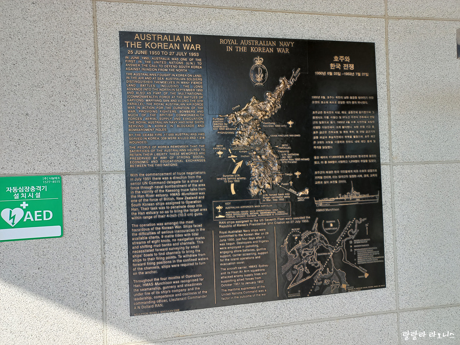 제적봉 전망대에는 6·25 전쟁에 참전한 호주군 해군 참전비가 있습니다. 호주는 6·25 전쟁에 약 17,000명의 병력을 파병했습니다. 이 중 339명이 사망하고 1,216명이 부상을 입은 것으로 기록되어 있습니다. 부상자도 많지만 사망자 수를 보고 놀랐습니다. 6·25 전쟁에 참전한 국가들을 잊지 말아야 합니다.