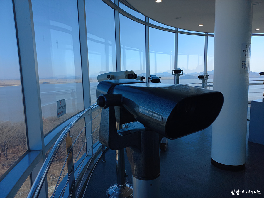 망원경으로 가깝게 볼 수 있습니다. 망원경 보는 데 500원짜리 동전이 필요합니다. 전망대에 동전 교환기가 있습니다. 500 동전 미리 챙겨가면 편리하게 볼 수 있습니다. 망원경으로 바라보면 진짜 북한 사람 움직이는 것이 보입니다. 북한도 사람 사는 곳이니 사람들 움직이는 게 이상할 것이 없습니다. 북한이라는 폐쇄적인 공간에서 살아가는 주민들 모습이 특별하게 보였습니다. 오버해서 말하면 신기했습니다.