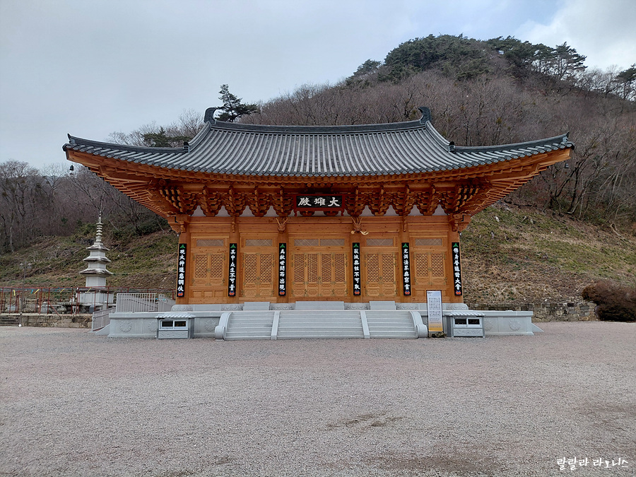 경내로 들어서는데 대웅전이 새로 지은 모습입니다. 고찰의 느낌이 아닌 것이 어색하다고 할까요? 알고 봤더니 이게 또 사연이 있습니다. 2012년 누전으로 대웅전이 소실되었습니다. 2015년 재건합니다. 2021년 방화로 인해 대웅전이 전소됩니다. 그리고 2026년 겨울 다시 지은 대웅전이 사진 속 모습인 것입니다.