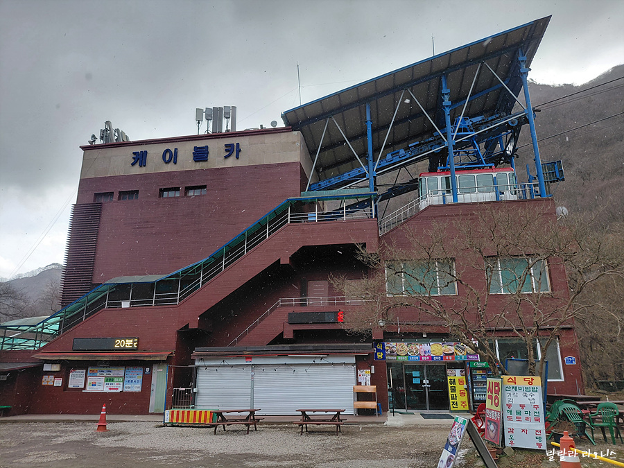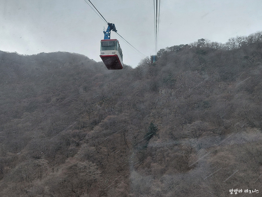 눈이 엄청나게 올 것 같더니만 이내 멈춥니다. 주차한 곳이 케이블카 승강장 근처입니다. 누군가가 케이블카 타자고 외칩니다. 눈도 오고 바람도 불어 케이블카가 운영할까? 했습니다. 누가 또 가보니 운영한다고 곧 탑승 마감한다고 합니다. 서둘러 승강장으로 올라가 케이블카에 오릅니다.