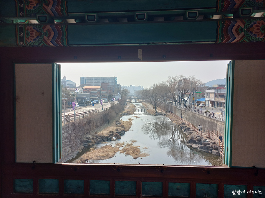 숙소에 들어가서 쉬고 난 후 친구들을 데리고 화홍문으로 왔습니다. 화홍문은 안으로 들어갈 수 있습니다. 창을 통해 수원천을 바라봅니다. 날씨가 따뜻해지면 수원천, 화홍문, 방화수류정 일대에 버드나무가 푸른 가지를 늘어놓을 것입니다. 수원은 버드나무의 도시입니다. 수원화성은 유천성(柳川城) 또는 유경(버드나무가 많은 서울)으로 불렸습니다. 수원 상인을 유상(柳商)이라 하였고요.
